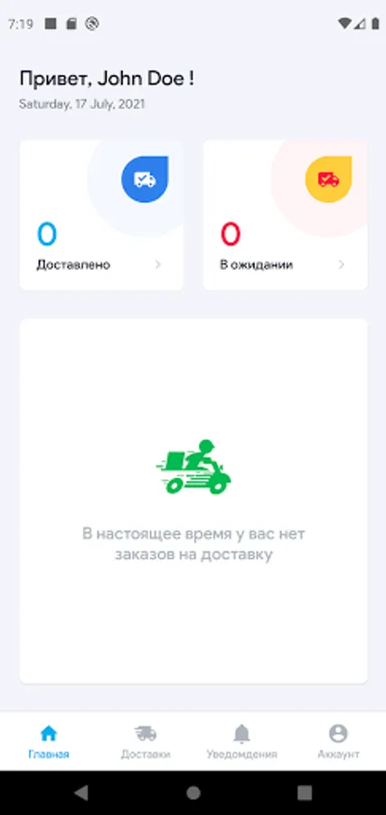 The courier accepts new orders, sees their geo-locations and locations, sees the entire complete history of deliveries and orders.
