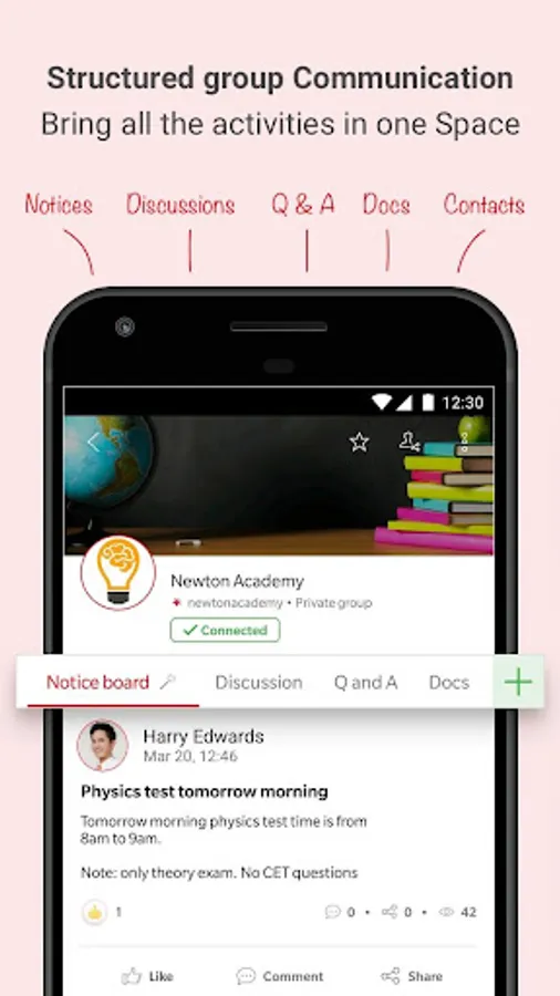 Create a Dome, add your contacts as members and customize! You may choose from our ready made cards such as Notices, Discussions, Q & A, Documents, Contact list, Blog and many more.