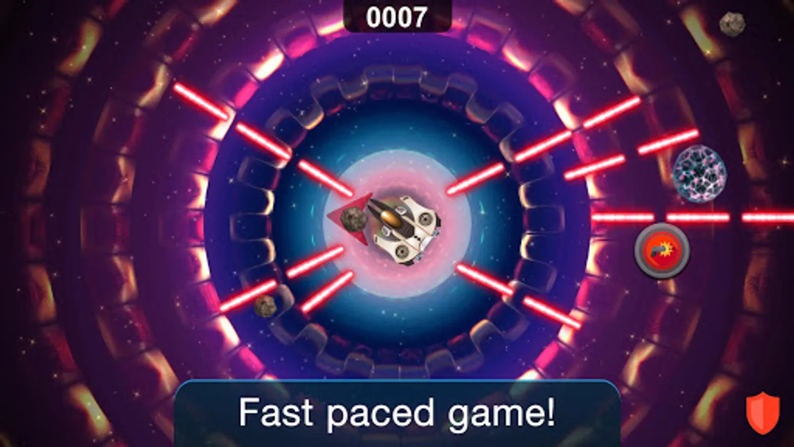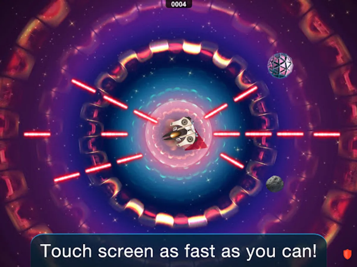 - Touch screen as fast as you can to fire and destroy the asteroids around you.
