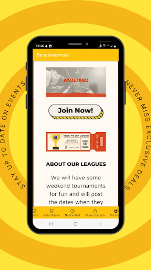 The Benchwarmers app gives you quick access to league updates, specials and exclusive discounts for users, as well as a convenient way order from our menu for a contact-less experience!