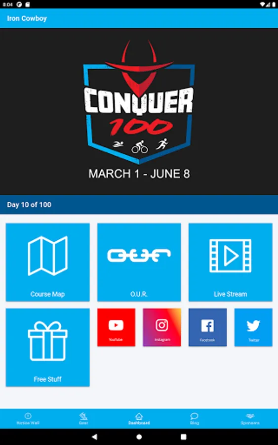 Follow along with James, the Iron Cowboy, in a 100 day triathlon, the Conquer100. Get news and updates about his progress as well as deals and exclusive content for app users. Check out James' gear, maps of the journey, and live content along the way.