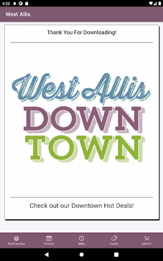 Download the West Allis Downtown app today to experience all West Allis has to offer! Residents and visitors of West Allis will find hot deals, trendy businesses and upcoming events within our community! Deals on local shopping, dining, nightlife and services are right within your fingertips when you download the app, and all 100% free.