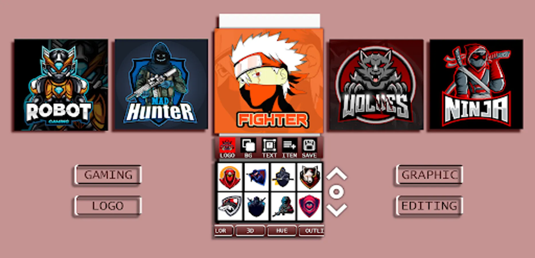 Logo Esport Maker-Gaming logo fully loaded Logo Designer App to create Professional, Unique and Impressive logos on your phone design gamer avatar and esport gaming logo for your profile picture,Dp and many more.
