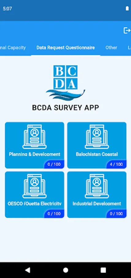 A project for the Government of Balochistan initiated by Balochistan Coastal Development Authority (BCDA) and developed by OCLITS Private Limited. The purpose of this app is to take and manage surveys.