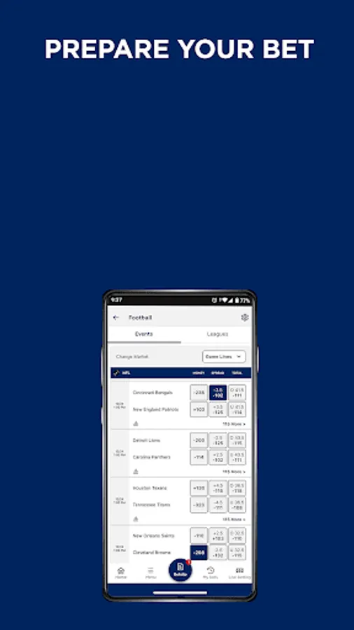 Bet on the money line, points spread, totals, and parlays with real-time betting odds, results, and stats.