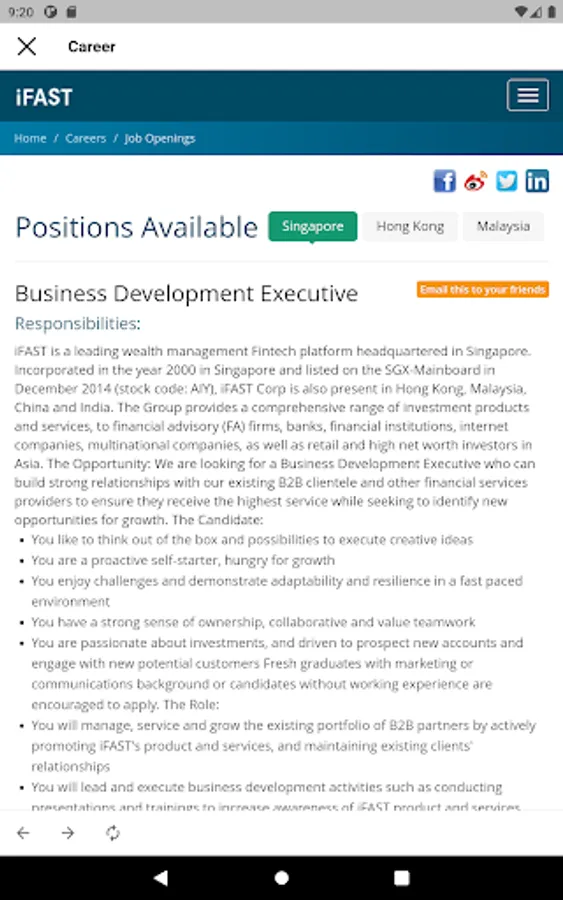 iFAST Connect is a mobile application designed to provide iFAST job opportunity and services.