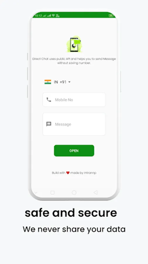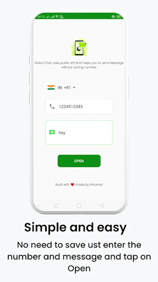 This is a tool app: simple and lightweight. No extra features, no extra size, no permissions,...just the direct chat feature.