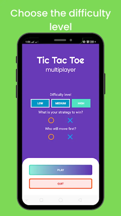 🌟Various tic toc game difficulties with computer low,medium,difficult.