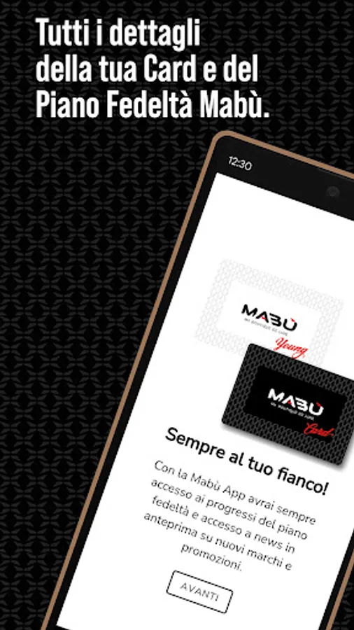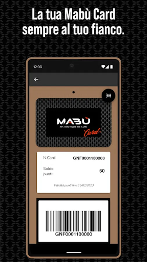 Your Mabù card will always be by your side, in a digital version with all the information on your profile always accessible.