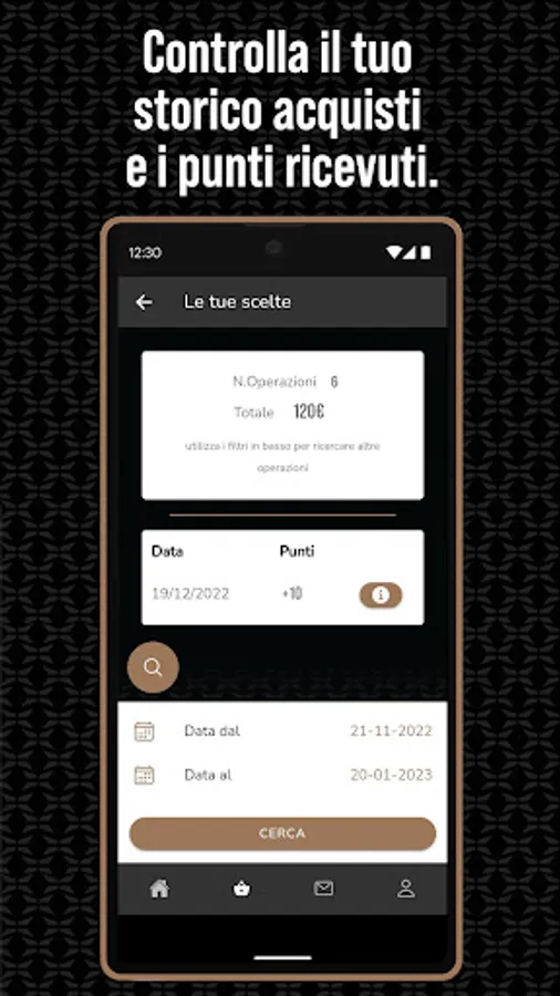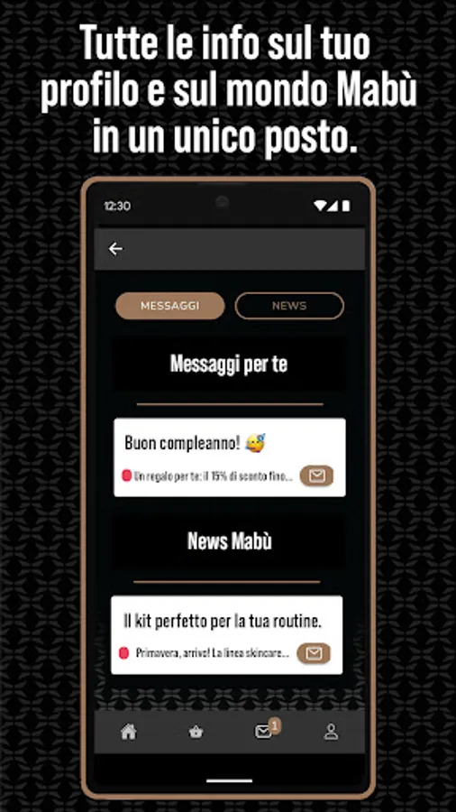 A specific section to find out what's new in the Mabù world, as well as a personal section to receive messages concerning your Card.