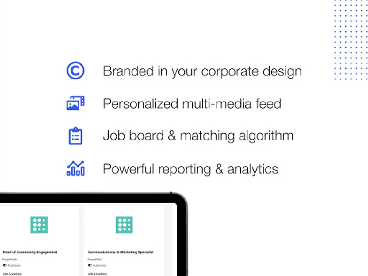 PeoplePath delivers client-branded platforms for organizations to strategically engage with their people throughout the career lifecycle - from candidates to alumni. This app serves as a compliment to your CRM or alumni platform helping you to further connect with you community.