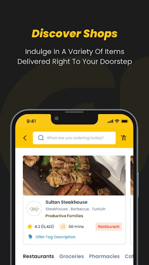 من خلال العديد من المتاجر المتوفرة لدينا تستطيع التنقل باستمرار واختيار العديد من الأصناف، سواءا أكانت اختياراتك من السوبر ماركت او وجبات لذيذة لتشاركها مع ضيوفك، نحن نوفر لك كل ذلك وأكثر.