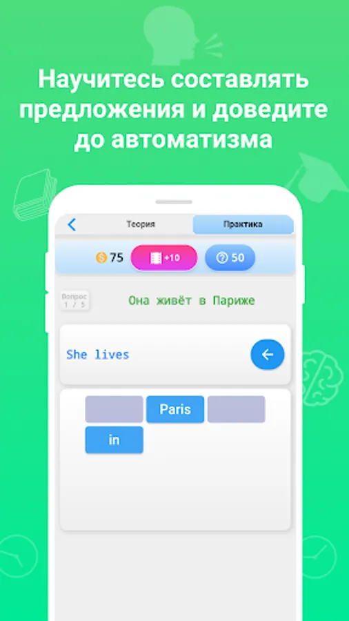 Learning English is easy and easy! In the simulator, 3 games are available for learning English words, so that the compilation of sentences goes even more productively.