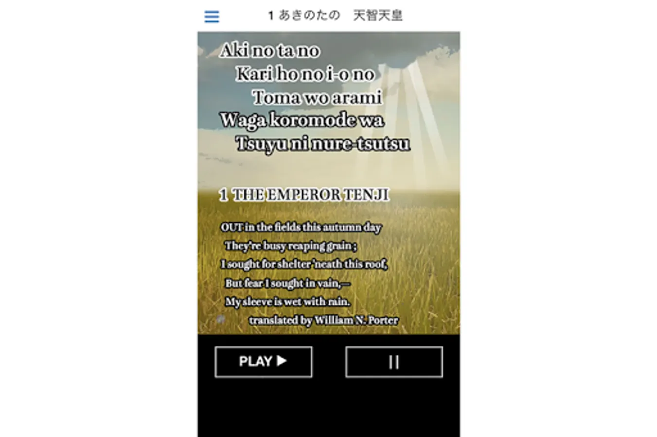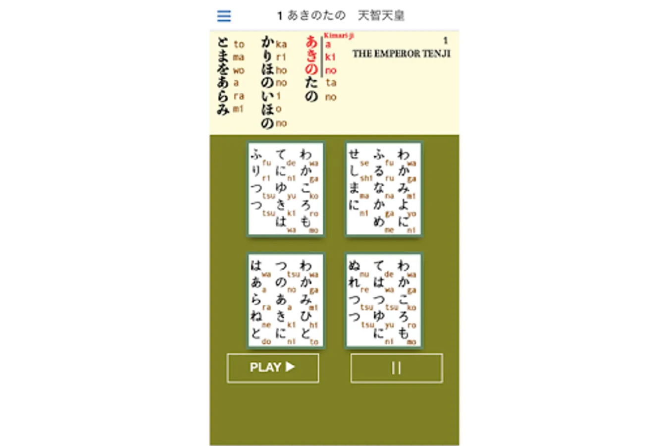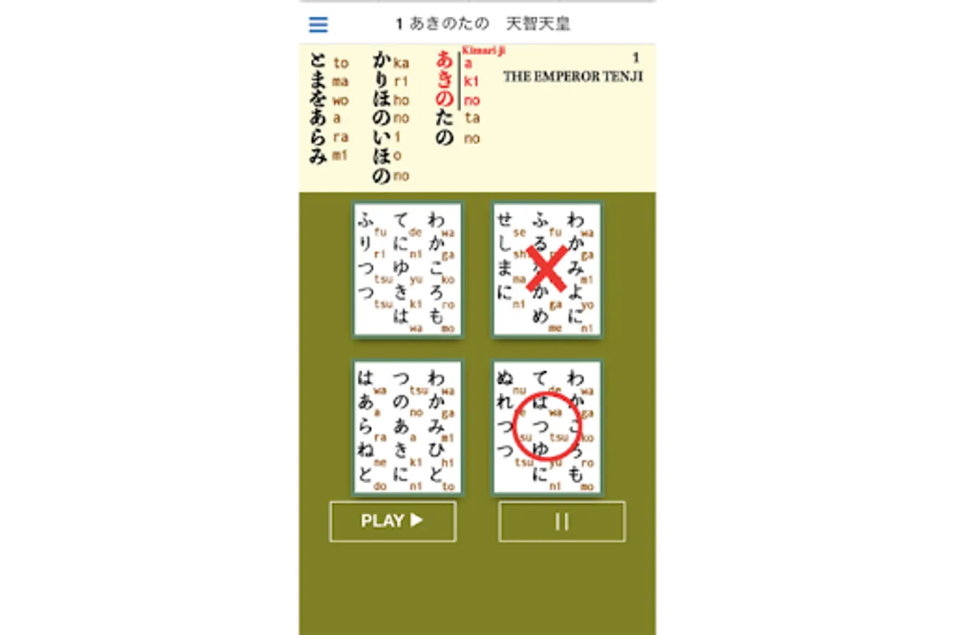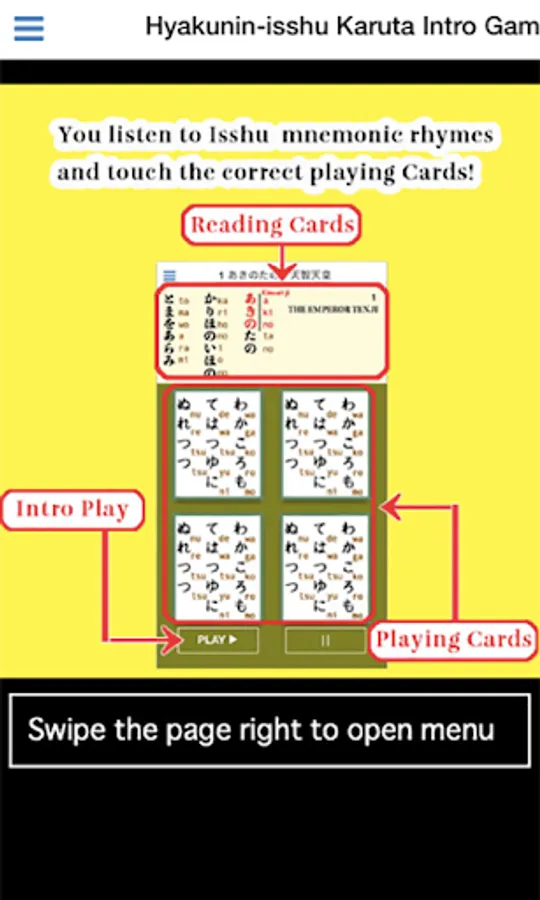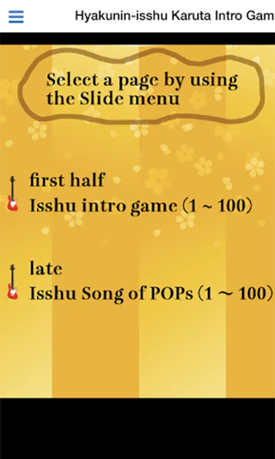 ◆The first half of the app is intro game corner◆Select the correct tag from the four Torifuda.◆The sound of the drums and the sound of the clappers the wrong answer. There is no stress by simple operation◆The second half of the app is the catchy song corner