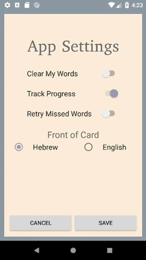 This flashcard app accompanies the textbook Introduction to Hebrew: A Guide for Learning and Using Biblical Hebrew by William Fullilove. It allows students to quiz themselves of their Hebrew vocabulary at any time. Learning a language, especially one no longer spoken, requires repetition, and lots of it. Now there’s no need to carry around a stack of flashcards. They’re all on your Android device!