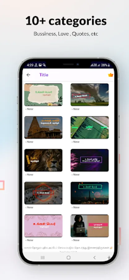 Tamil intro maker has 500+ templates and motion videos in various categories.