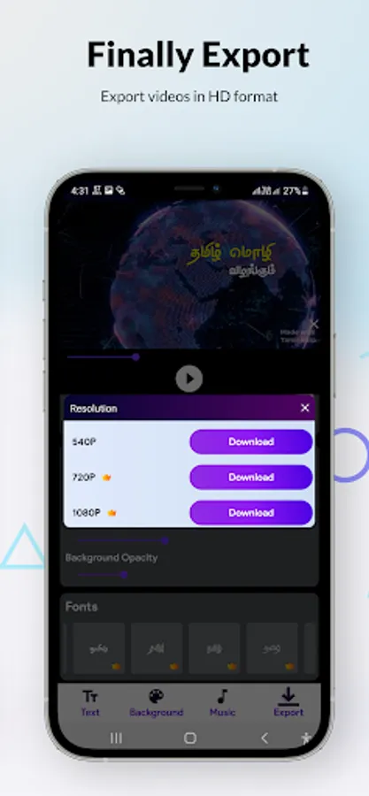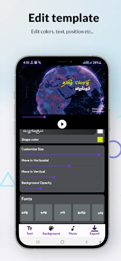 Tamil intro maker app also has 50+ tamil language fonts. in various styles.