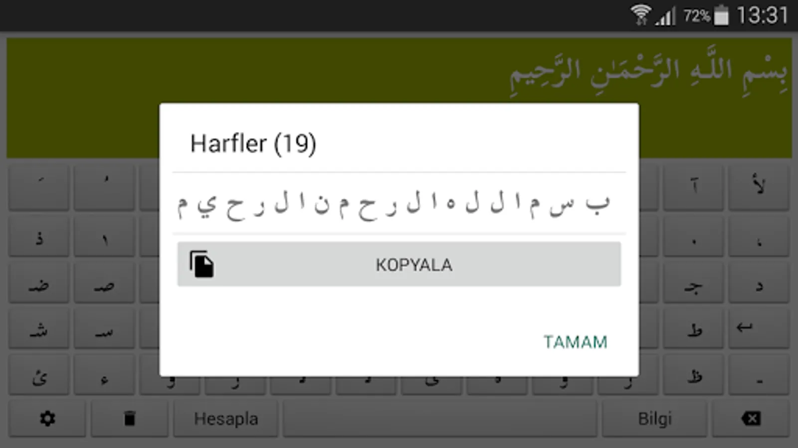 You will be able to type Arabic words comfortably with its special keyboard. Copy-paste support will also give you the convenience of writing and using what you write elsewhere.