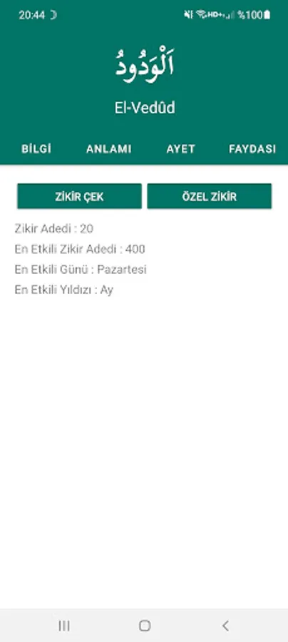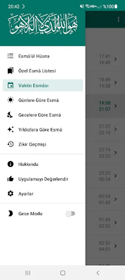 Esmaul Husna Times and Zikri application developed for you to benefit from the names of Allah in the most effective way; Esmaül Hüsna Details, Esmaül Hüsna Times, Esmaül Hüsna Zikri, According to Days - Nights and Stars on Esmaül Hüsna [without any commercial income] has been offered to users.