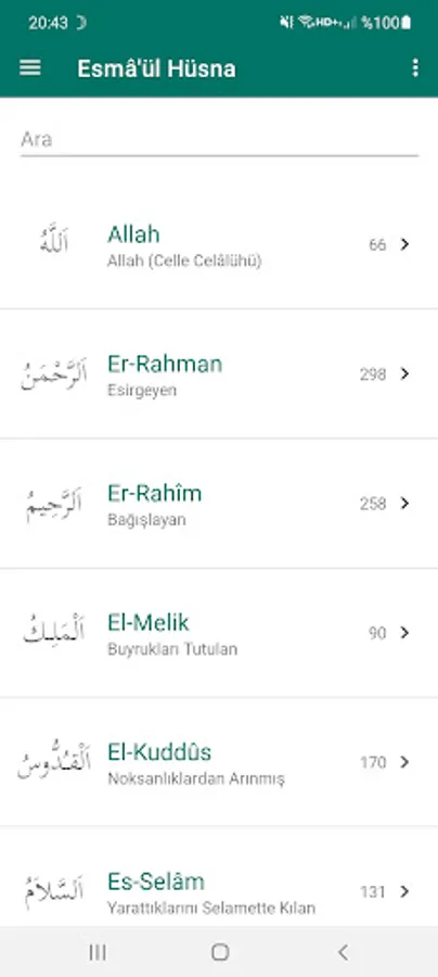 - You can easily access the details of the essence you want by viewing the Esmaül Hüsna list.