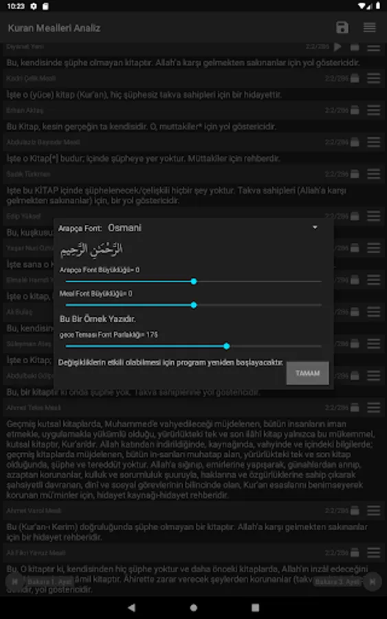 Changing the font size of Arabic and Turkish translations, adjusting the brightness of the fonts of the night theme