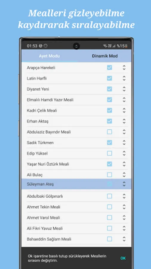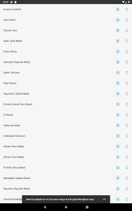 To be able to hide the unwanted translation of the Quran, to sort the Meal in the order you want in order to bring the desired meaning to eye level while reading.