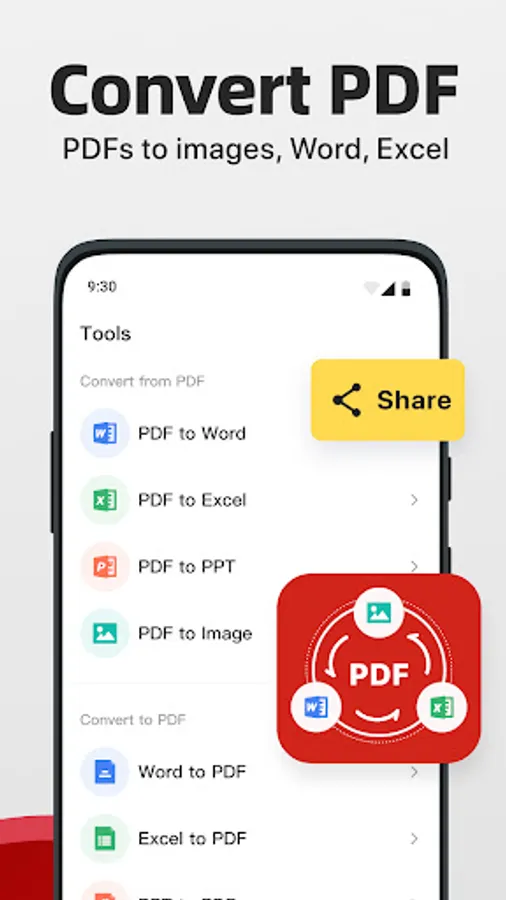● Share PDFs, Word documents, images, or other types of files via social media, emails, and other such platforms, or for printing.