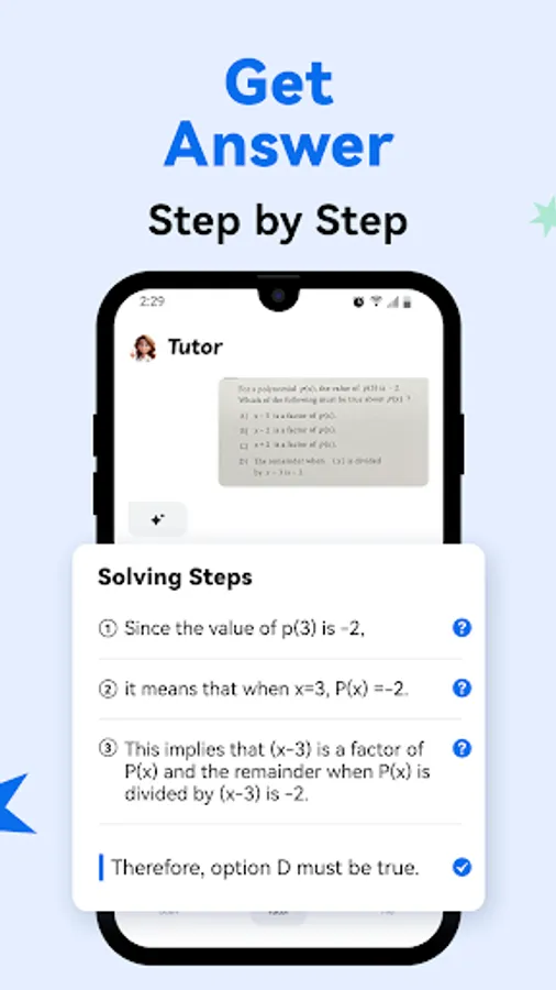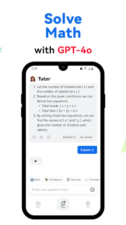 On the path of learning, solving math problems often leaves people puzzled. But don't worry, Mathlet AI is your math solver and homework helper. Just use your mobile phone to take a photo of the math problem, and you can get the correct answers with step by step explanations. You can also chat with AI tutor at any time to gain a deeper understanding of relevant knowledge.