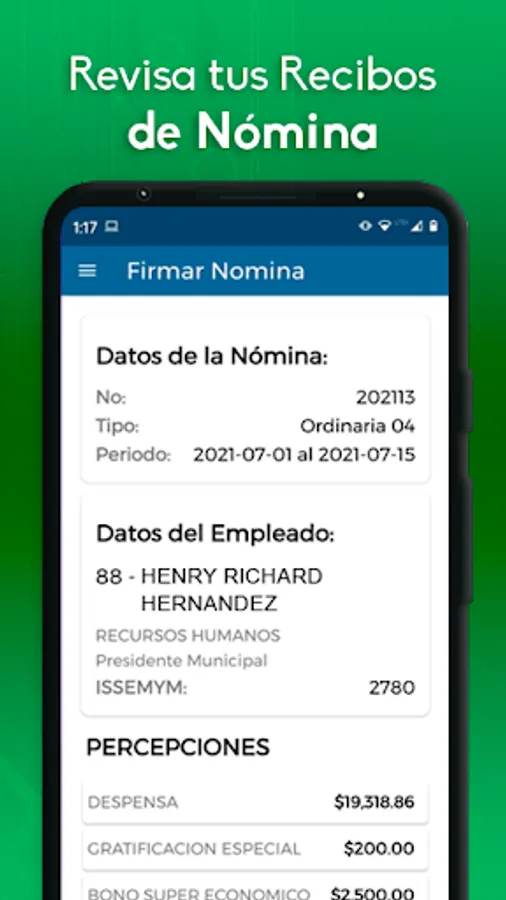 Check your Payroll receipts from your cell phone at any time. Sign them and download your receipt in PDF and XML format. You can share it by email, or by instant messaging.