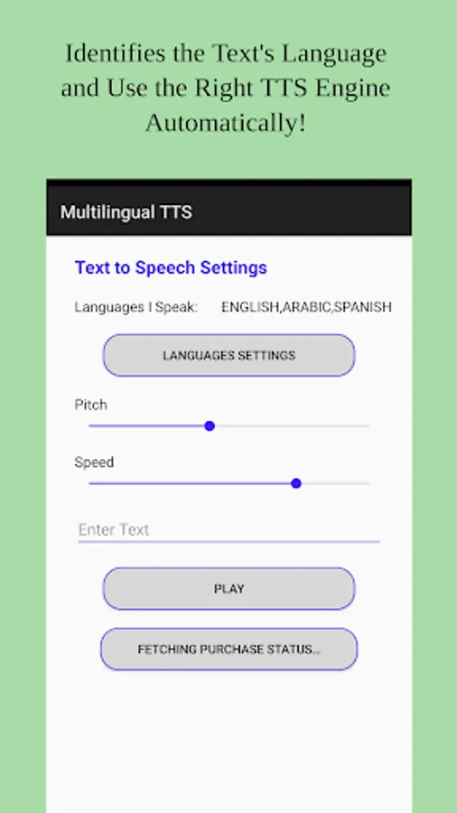 Multilingual TTS Automatically recognize the language of the given text and uses the right text to speech engine accordingly.