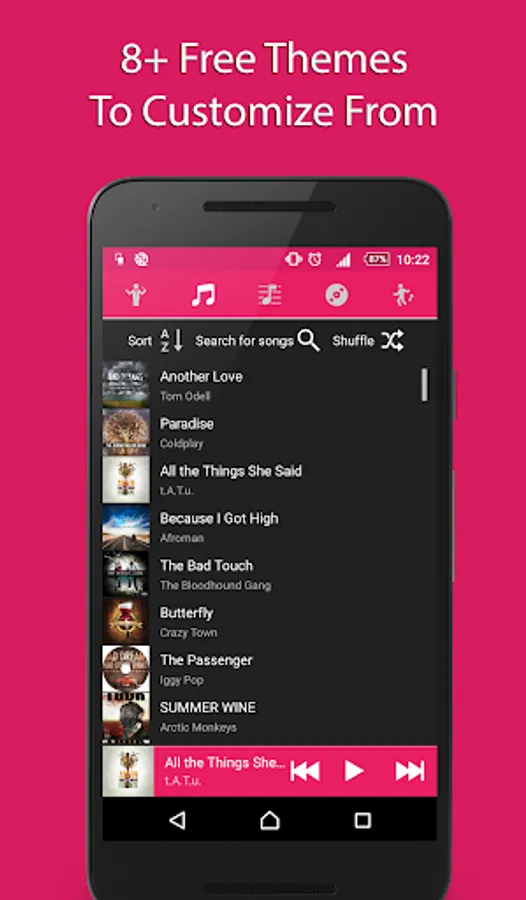 This MP3 music player also comes with lots of themes for you to customize the app with for free!