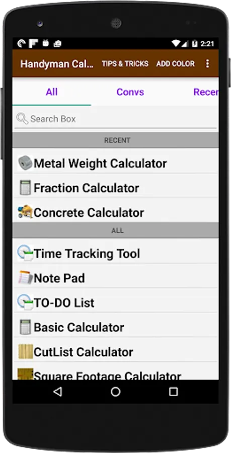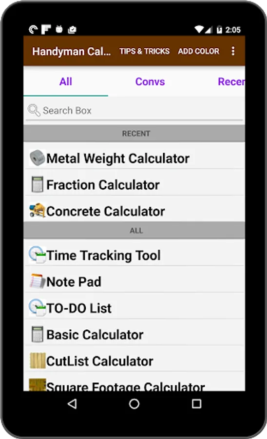 Calculate materials, track invoices, time spent, manage to-do list and save calculations to notepad. Over 100+ calculators related to various construction fields and DIY.