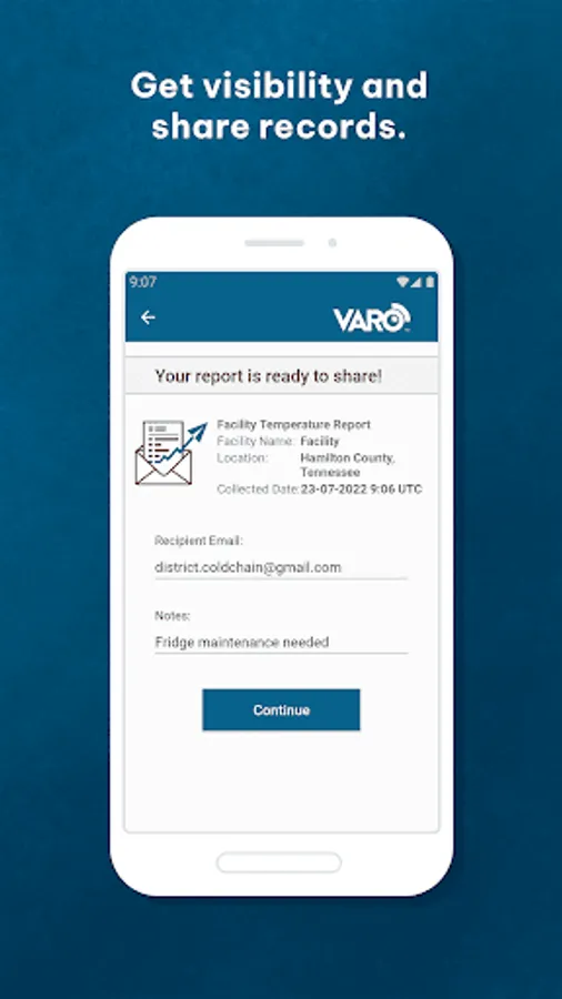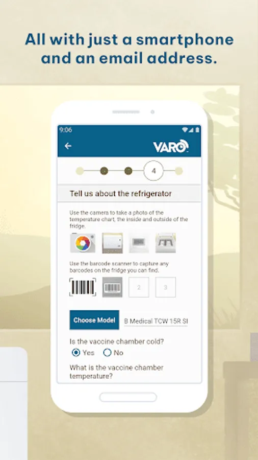 Varo is a mobile app that enables Android phone users to collect and transmit the performance data that is recorded and stored by 30-day temperature and alarm recording (30DTR) devices that are currently widely deployed in the vaccine cold chain. Users can also create a manual performance report if a 30DTR is not available at the facility.