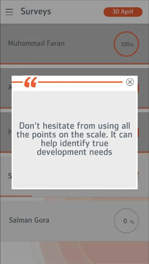 • Progress is saved automatically so even if a survey is left mid-way, employee doesn’t need to fill it from the start again