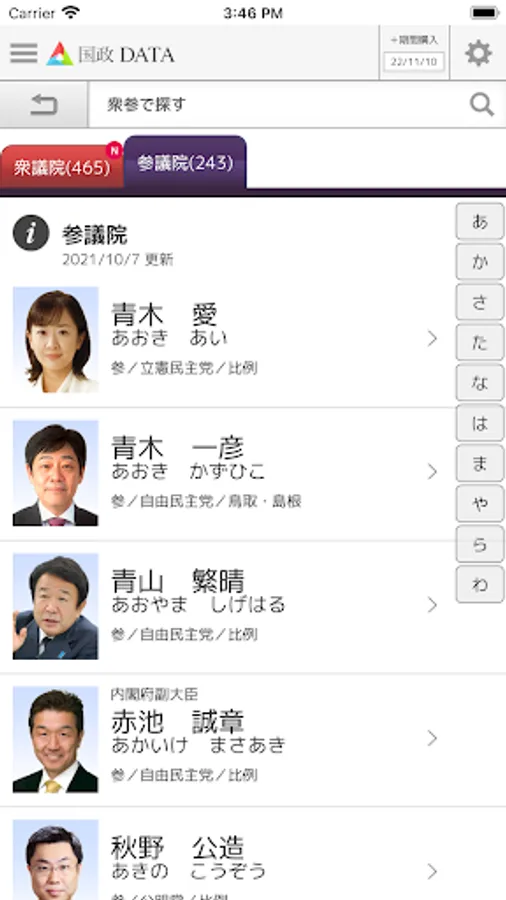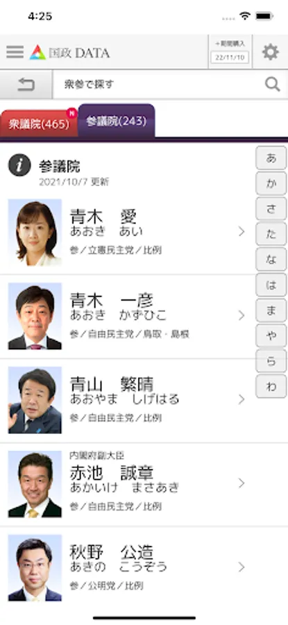 Information on all 710 members of the House of Representatives and House of Councilors is posted.