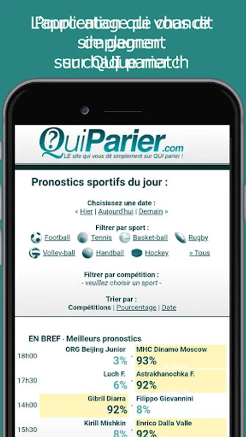 Football, rugby, tennis, basketball, volleyball, handball ... The application that tells you simply about WHO to bet! Simple and efficient
