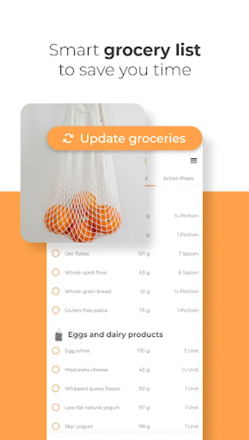 We generate an automatic shopping list based on the selected dishes in your nutrition plan, so you don't have to worry about anything.