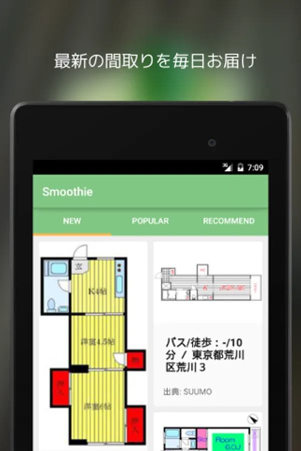 間取りストに大人気の間取りビューワーSmoothie(スムージー)。四畳半以下のお得な物件もチェックでき、これまで出会えなかった素敵な間取りがざくざく見つかる!