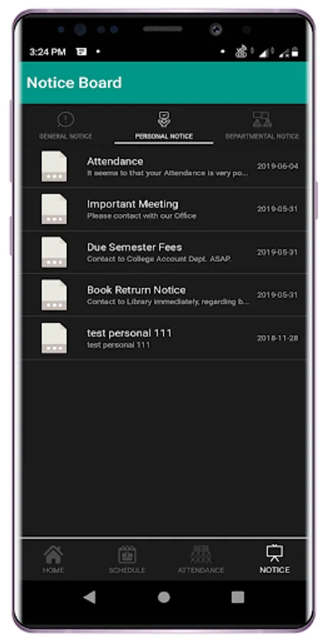 - View all type of notice issued to their children