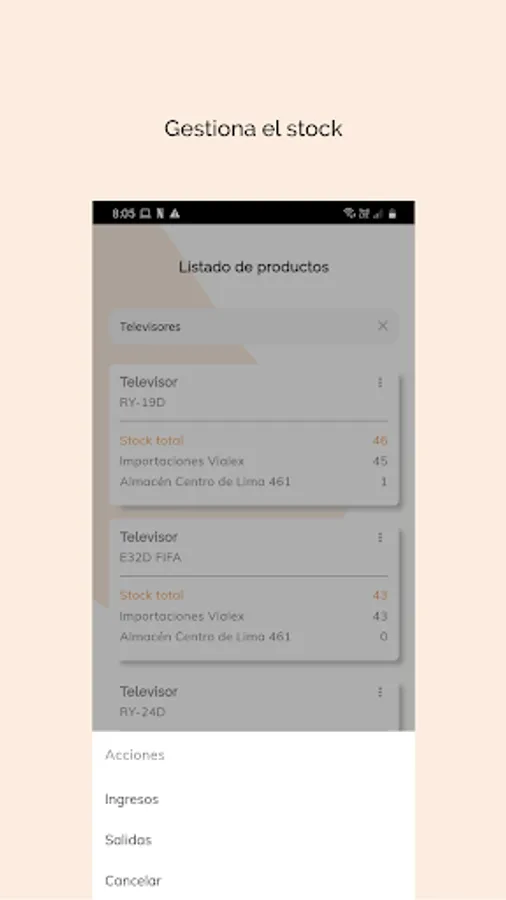 Inv. is an application that allows you to manage stock and inventory control of multiple stores.