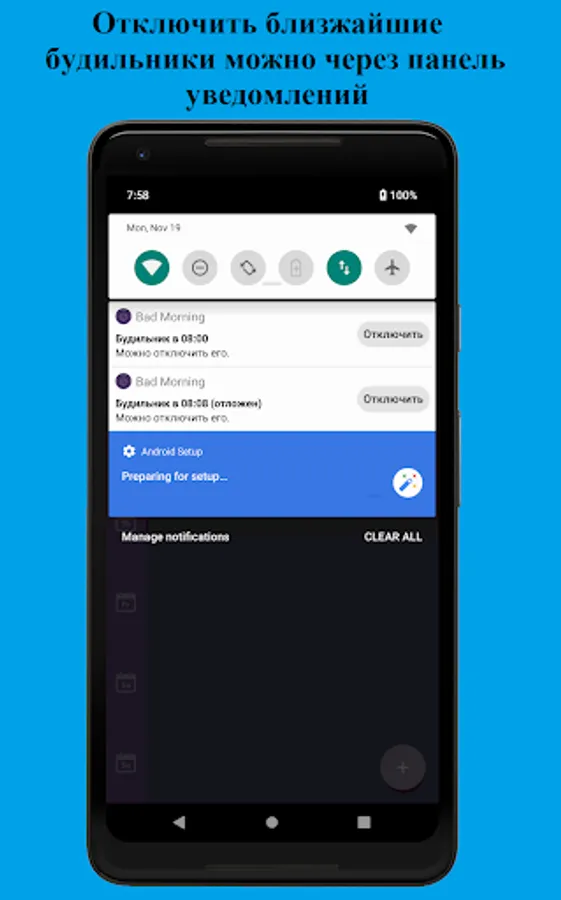 Turn off the alarm clock with a swipe up
