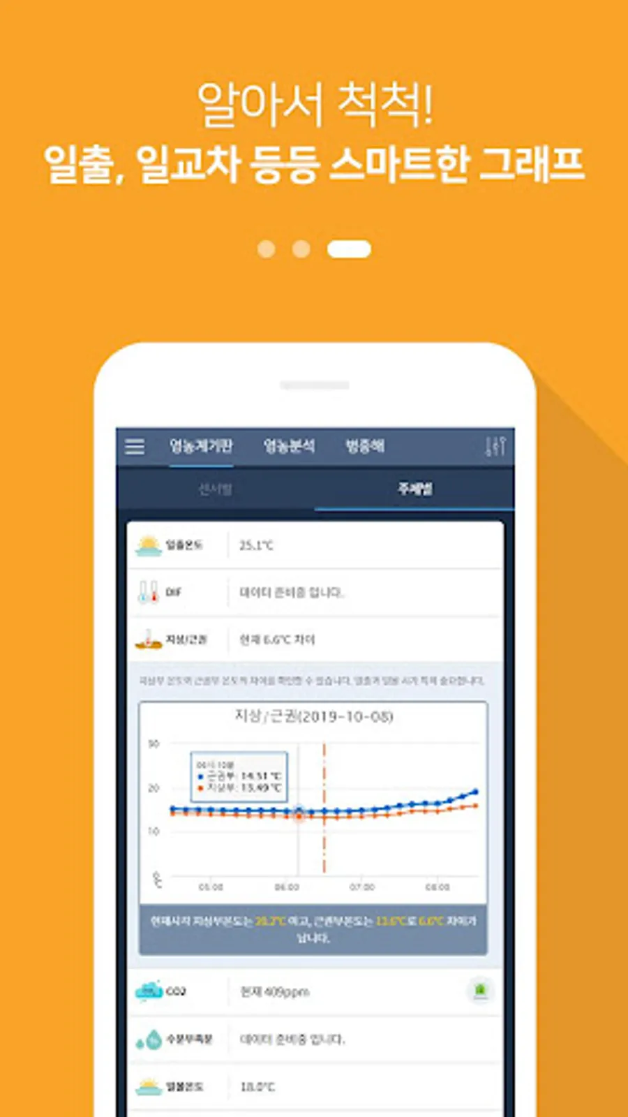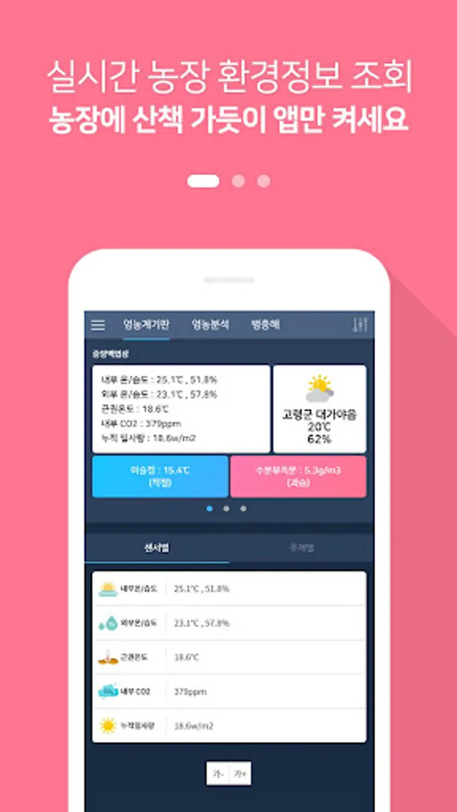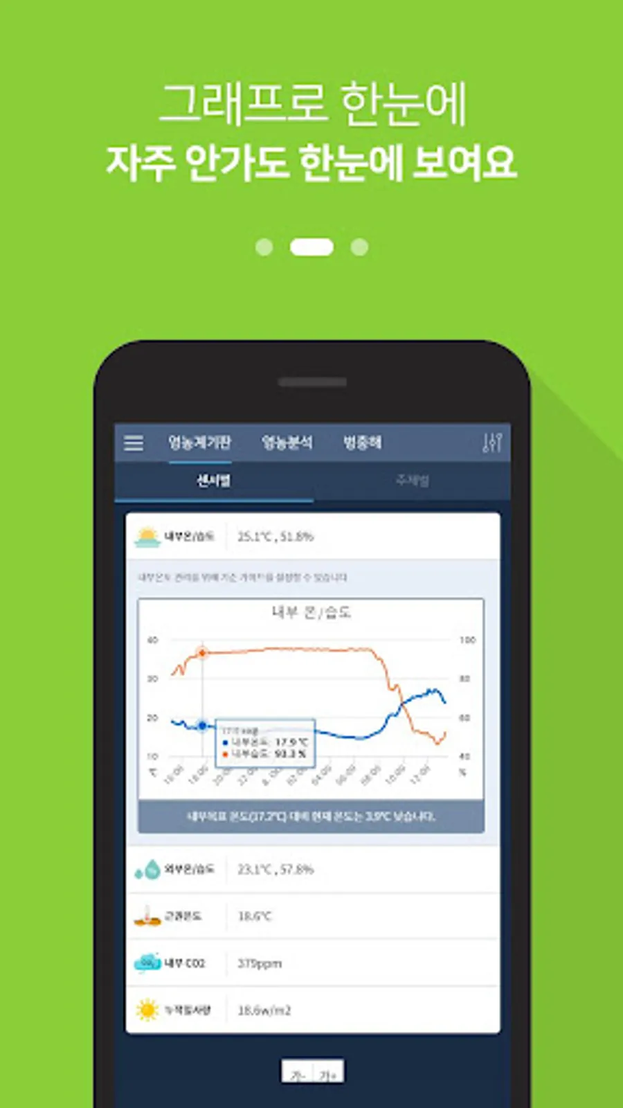 2. Check the registered farm's temperature / humidity, CO2, and insolation through the farming board.