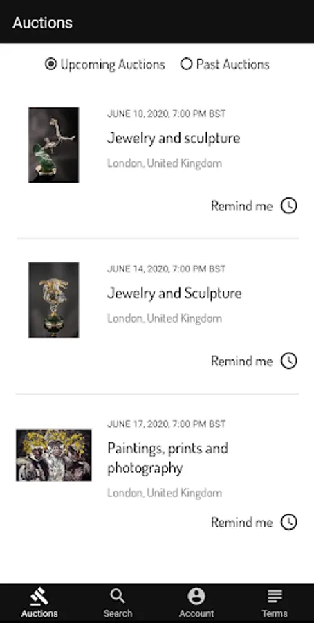 - Receive reminders to ensure you never miss a chance to bid in a sale