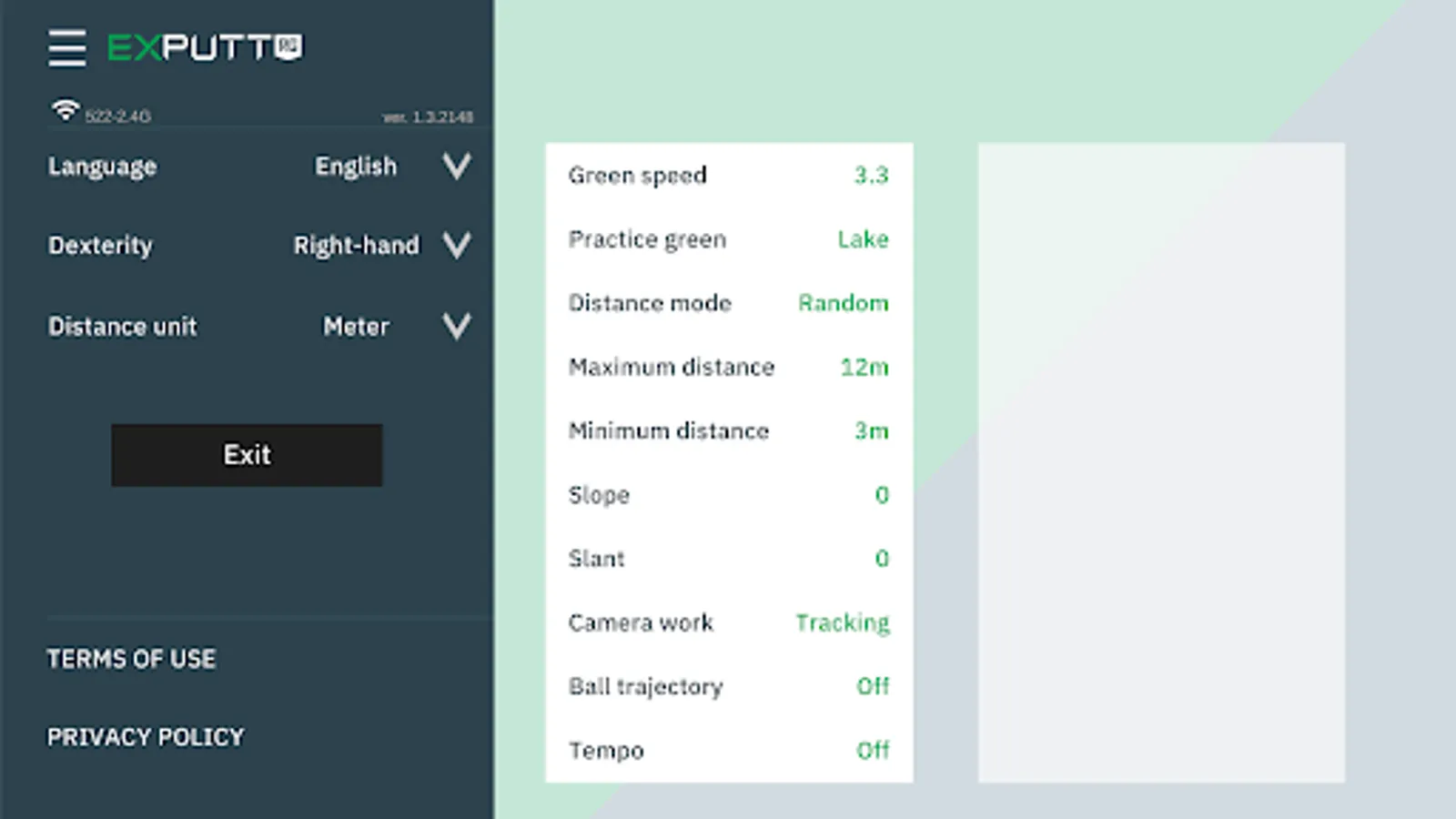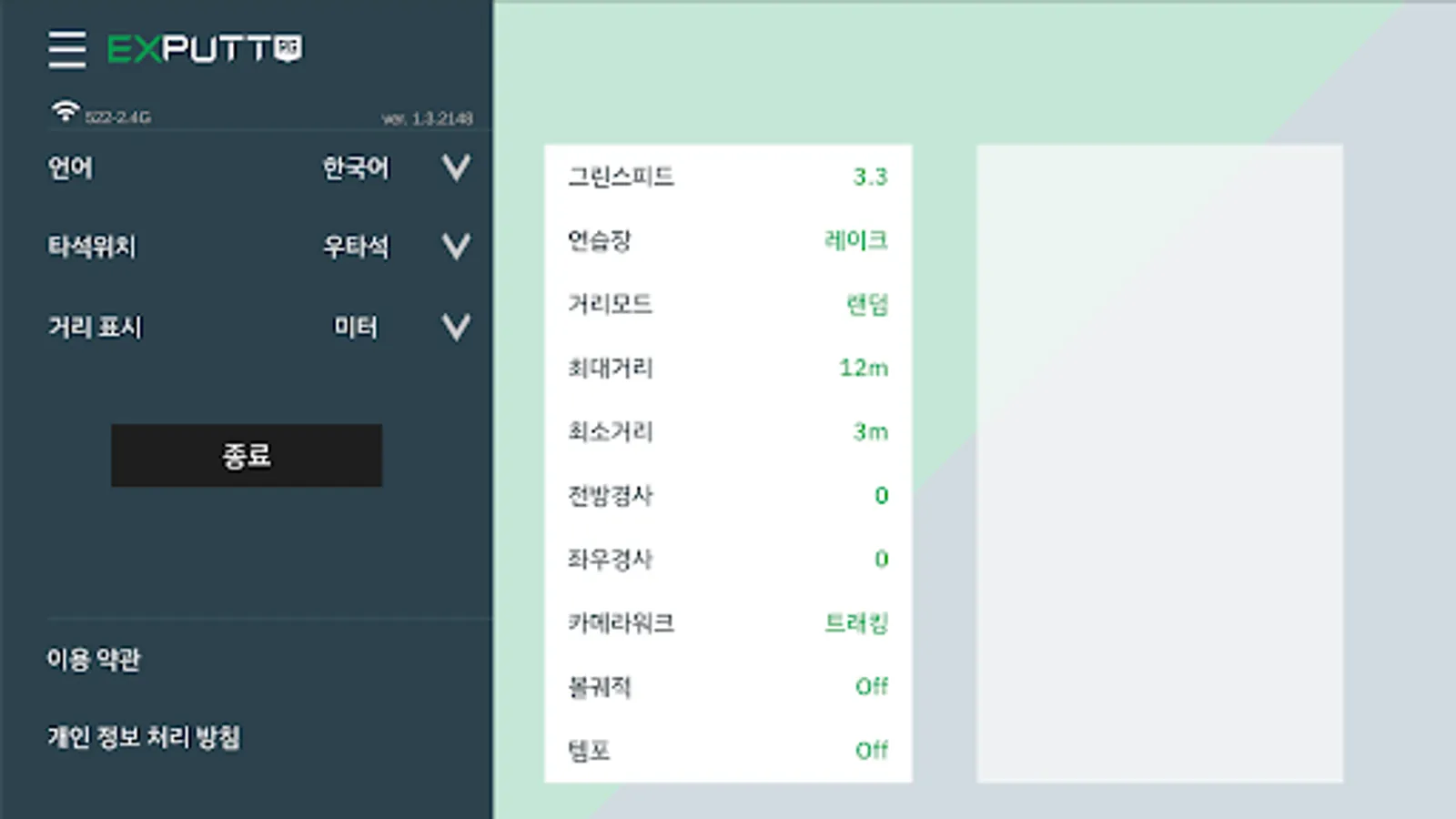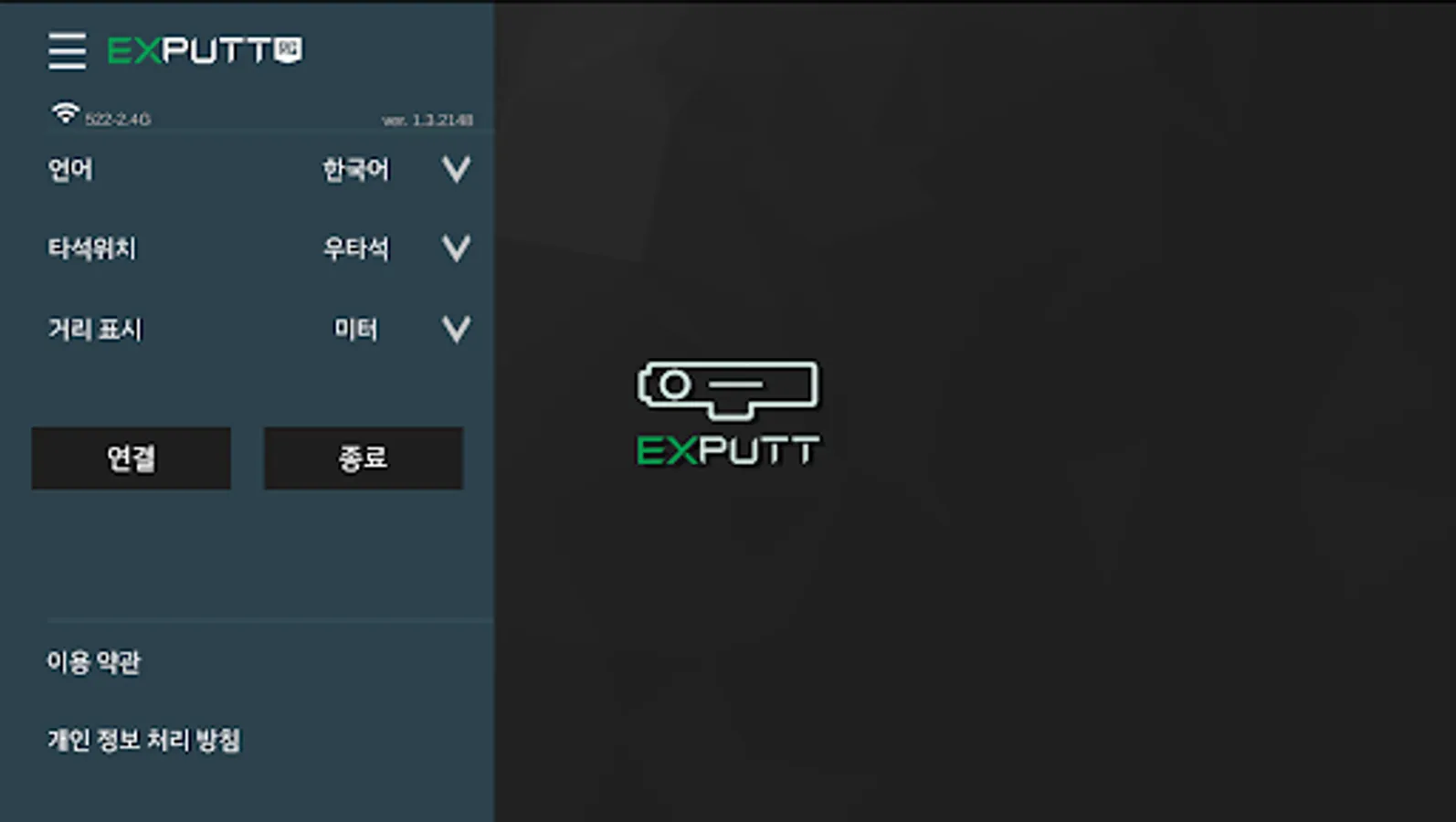 The Output RG App (hereafter 'eApp') is an application program that connects the Output RG device (hereinafter 'eDevice') through a Wi-Fi network, receives measurement information from the eDevice, and drives the putting simulator.