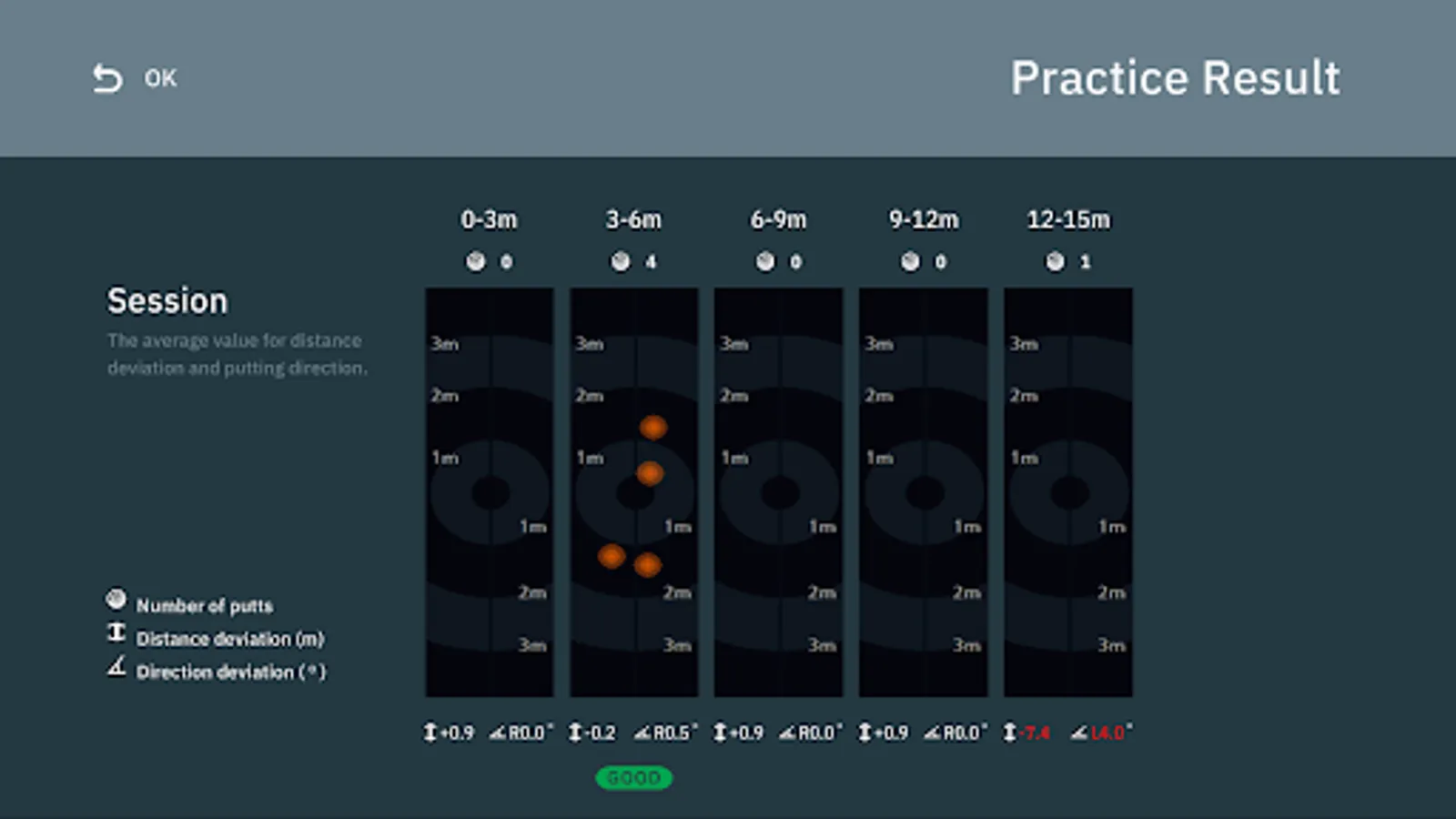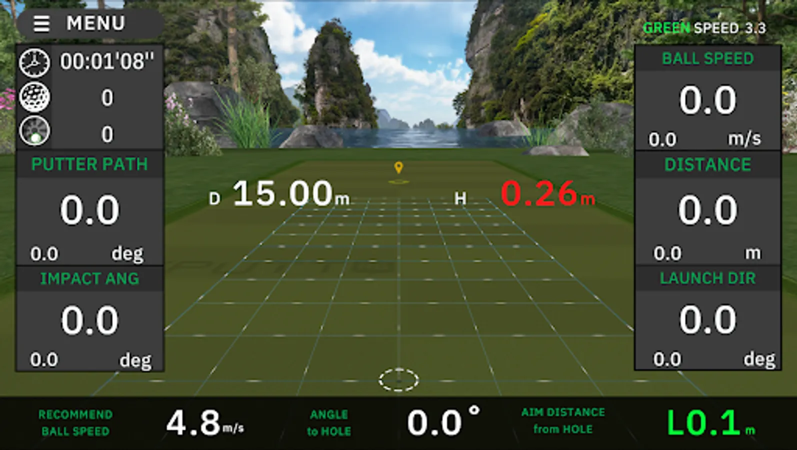 The eApp runs alone and cannot practice putting, it requires an eDevice product. The eDevice is a product that includes more practice tools than the eApp, and it is a product that allows you to practice distance on flat greens and practice slopes and play games on greens modeled on real greens. eApp is a specialized application program that enables the distance practice mode included in the eDevice to be run on a mobile device (hereinafter 'mDevice').