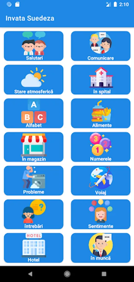 Practicați limba suedeza gratuit cu limba suedeza. Aplicația noastră are, de asemenea, un dicționar extins suedeza-română. Puteți alege dintr-o varietate de cuvinte.