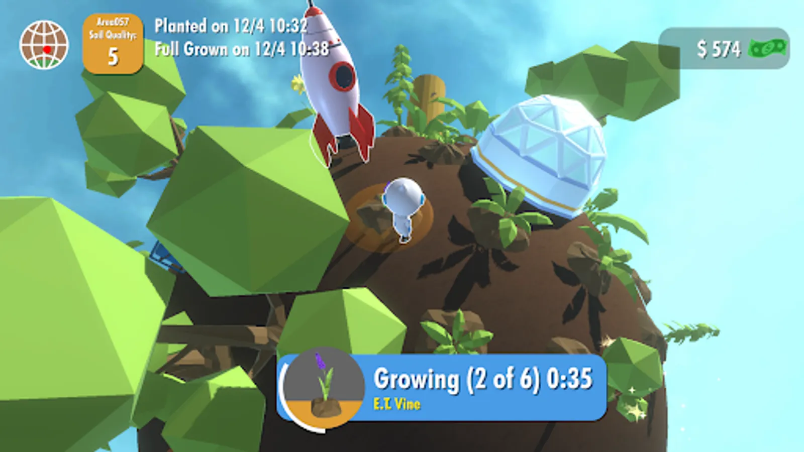 Easy gameplay, drag and move freely on the planet surfaces. Tap the action buttons to perform the tasks, such as preparing the soil and planting the seeds. Harvest your crops and gain coins to install new varied structures, until to support life.