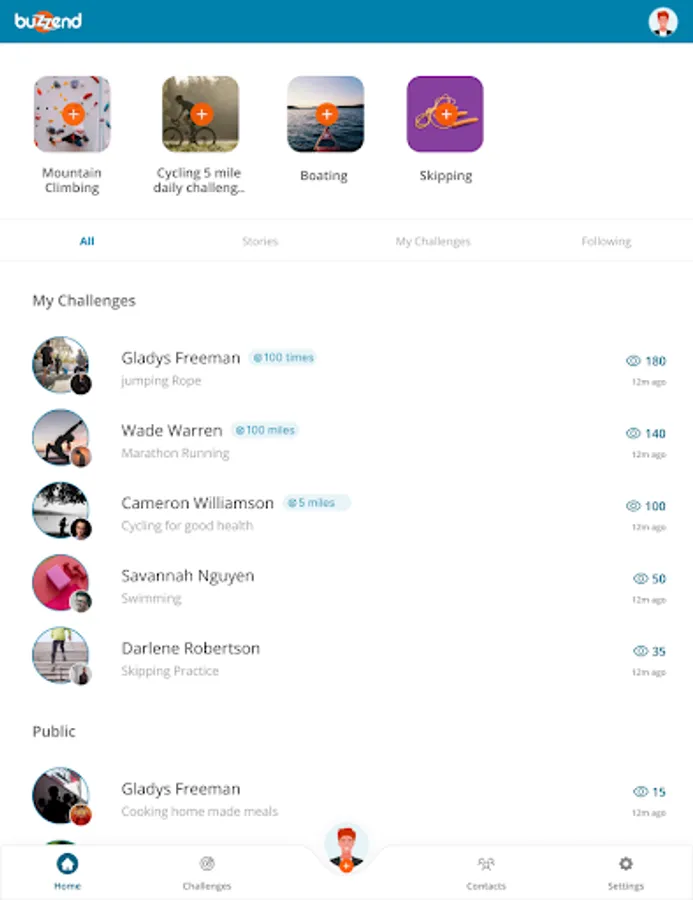 You can create or participate in contests/challenges. Also you can post your progress or stories within your circles or publicly.