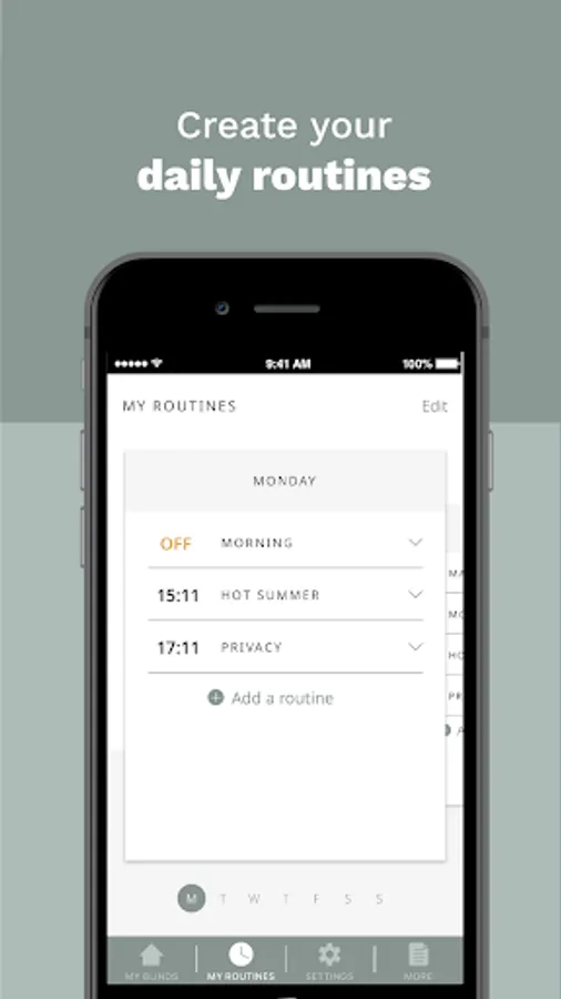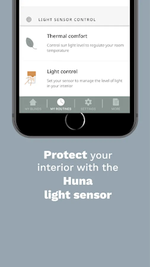 Huna app connects directly with your blinds to control everything.