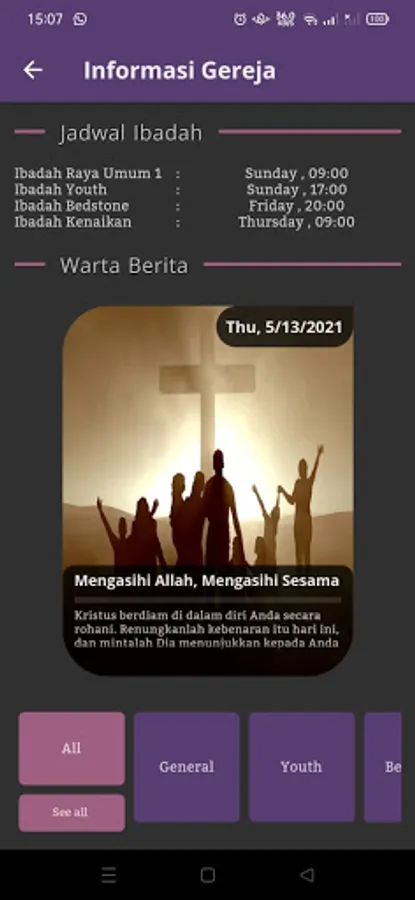 This application contains a collection of information and services about Youth GBI El Shaddai worship.